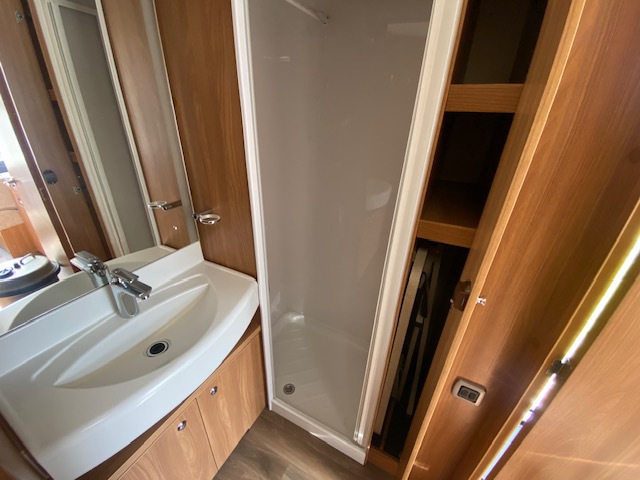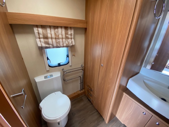 - Thetford swivel-cassette toilet and vanity basin with mirror